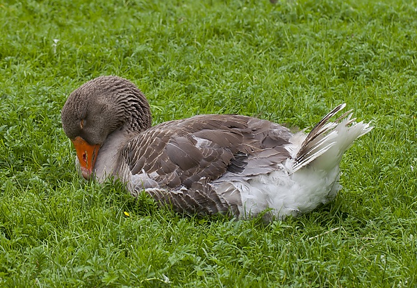 Оперение домашних пород очень разнообразно: оно может быть белым, серо-бурым (близким к дикому типу) или промежуточным. Существует десятки домашних пород с многочисленными вариациями по размеру и окраске. У некоторых домашних пород наблюдается половой диморфизм, но у диких подвидов его нет.