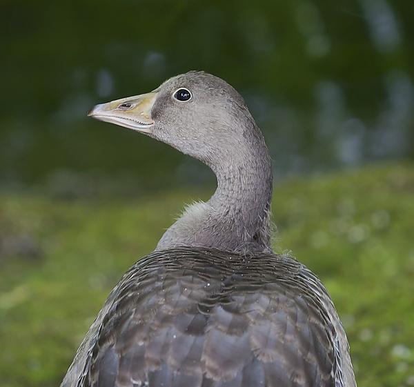 В природе этот гусь отличается от других видов крупной головой и массивным клювом (54-73 мм). Клюв оранжевый или розовый в зависимости от подвида, с белым ногтем.