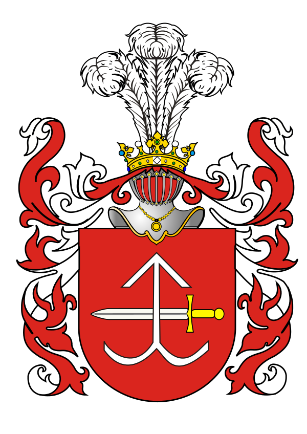 В красном поле серебряная стрела с раздвоенным древком, которое посередине пересекает лежащий меч. Когда вместо меча располагается крест, герб называется Сестринец (польск. Siestrzeniec).