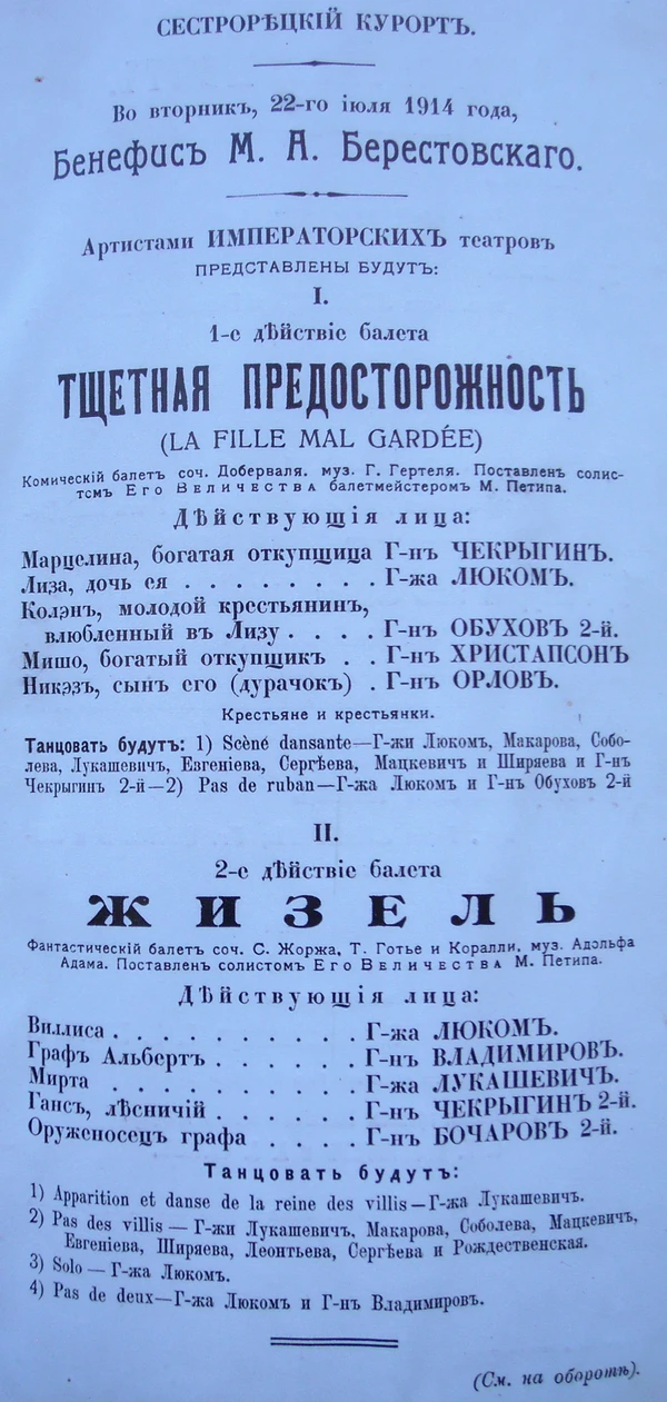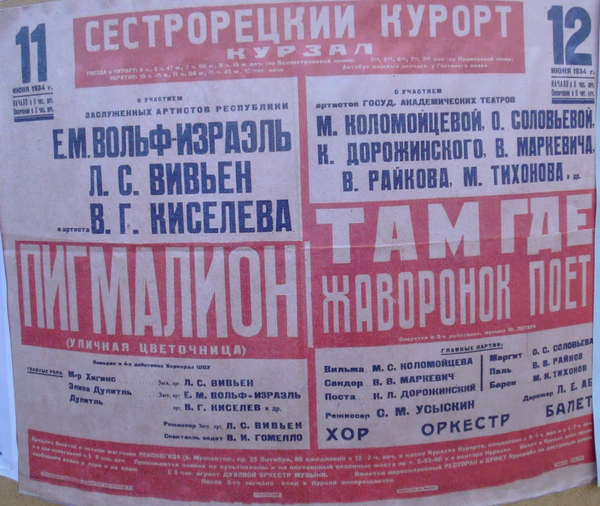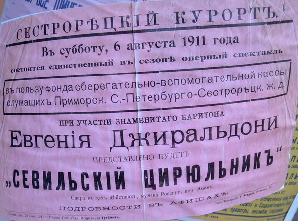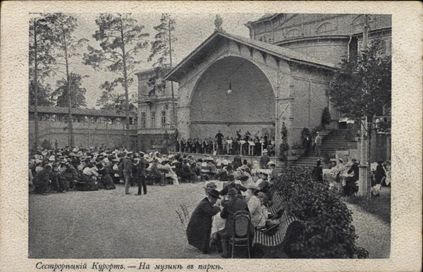 В 1927 году проводились вечера фокстрота для населения Сестрорецка. На сцене играл оркестр, а на половине зала у сцены, свободной от кресел, пары танцующих. В конце зала расставлены столики. В один из вечеров за столиком зала рабочий СИЗ Арцишевский Константин Фелицианович увидели народного комиссара Луначарского Анатолия Васильевича, который заканчивал 30-дневный отдых в Курорте. Заведующий агитпропотделом Сестрорецкого горкома партии Настин попросил его сделать доклад о международном положении в театре сада отдыха, где собралась половина населения города. 1927 год: радио, телевидения не было. Доклад прошёл в полной тишине, в конце было несколько вопросов и гром заключительных аплодисментов[6].