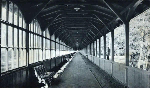 От вокзала к зданию курзала и далее, отделяя береговую эспланаду от естественного парка, шла крытая галерея длиной 200 саженей (420 м). Со стороны залива она была застеклена, а со стороны парка имела открытые проёмы. В галерее стояли садовые скамейки для отдыха.