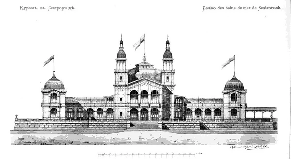 Курзал был 3-х-этажным, деревянным сооружением, построенным по проекту арх. Зигфрида (Григорий) Яковлевича Леви (1860—1913) между парком и пляжем берега Финского залива.