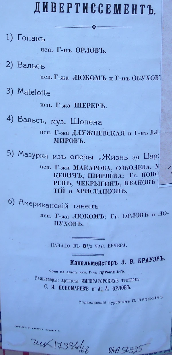 Под руководством пролеткульта в курзале давались концерты соответствующей идеологической направленности.