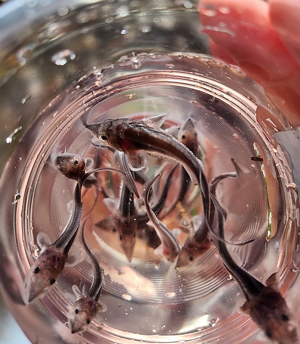 Тело веретенообразное с несколькими продольными рядами жучек. Рыло короткое, треугольной формы. Перед ртом на нижней поверхности головы расположены 4 округлых усика без бахромы. В спинном ряду 12—19 жучек, в боковых рядах с каждой стороны тела по 37—56 жучек, в двух брюшных рядах по 9—15 жучек[4].