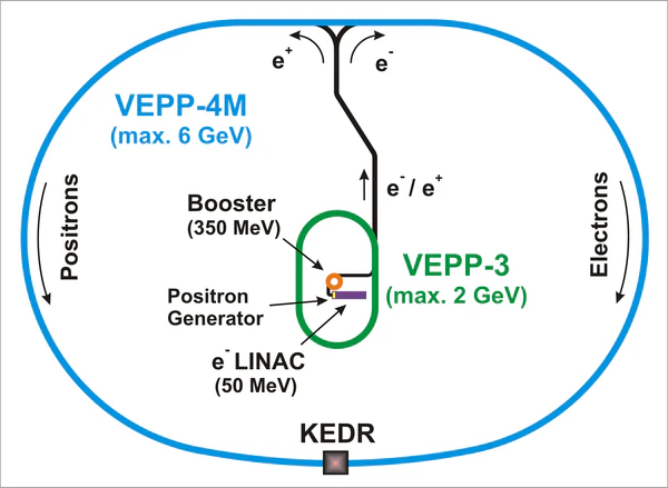 - ВЭПП-4М — электронный синхротрон с энергией 4.5 ГэВ, и станции на нём: