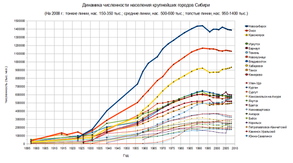 Норильск, Прокопьевск и Бийск выбыли из списка ввиду депопуляции.