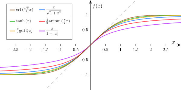 В семейство функций класса сигмоид входят такие функции, как арктангенс, гиперболический тангенс и другие функции подобного вида.