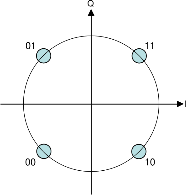 Примеры созвездий для различных видов манипуляций (к дискретному сигналу применены коды Грея)
