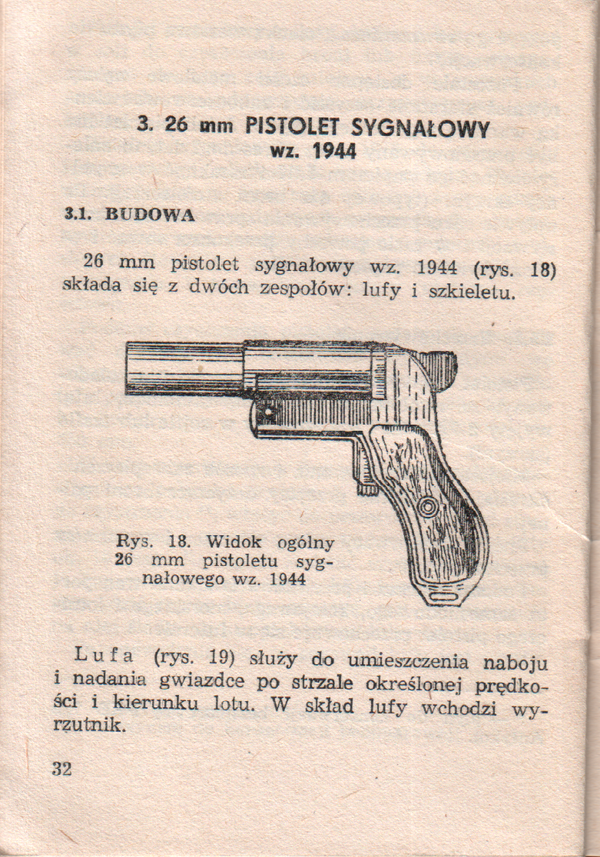 - Pistolet sygnałowy wz. 1944 — пистолет польского производства, выпуск которого в 1948 году освоил оружейный завод в Радоме. Накладки на рукоять из чёрной пластмассы с изображением стреляющего лучника[4].