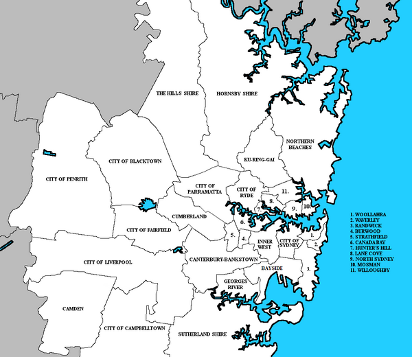 В настоящее время в состав Сиднея входят 38 округов:
