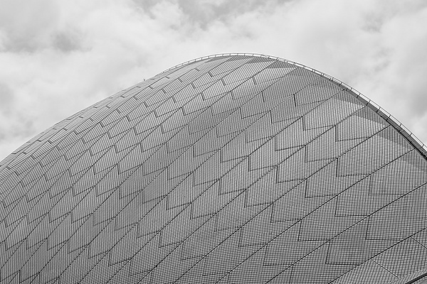 Кровля оперного театра состоит из 2194 заранее изготовленных секций, её высота 67 метров, а вес более 27 тонн, всю конструкцию удерживают стальные тросы общей длиной в 350 километров (если использовать сквозную прокладку, то это расстояние от здания театра до столицы страны Канберры[14]). Кровлю театра образует серия «раковин» из несущей бетонной сферы. Эти сферы обычно называют «скорлупками» или «парусами». Они созданы из сборных бетонных панелей в форме треугольника, которые опираются на 32 сборные нервюры из того же материала. Все они составляют часть одного большого круга, что позволило очертаниям крыш иметь одинаковую форму, а всему зданию законченный и гармоничный вид[7][8]. Все окружающие сферы имеют окружность в 74 метра[21].