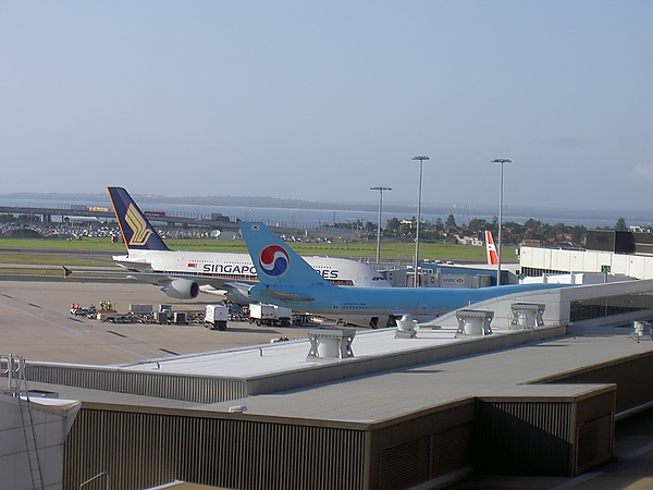 Аэропорт Сиднея имеет три пассажирских терминала. Терминал международных направлений отделён от остальных двух терминалов одной из взлётно-посадочных полос, поэтому пассажиры должны иметь некоторый запас времени для своего перемещения между зданиями. Между международным и внутренними терминалами с 6:00 до 20:50 курсирует бесплатный автобус T-Bus Service, продолжительность поездки составляет около 10 минут.[5]