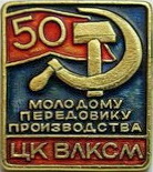 - Значок ЦК ВЛКСМ «Молодому передовику производства» (1957)