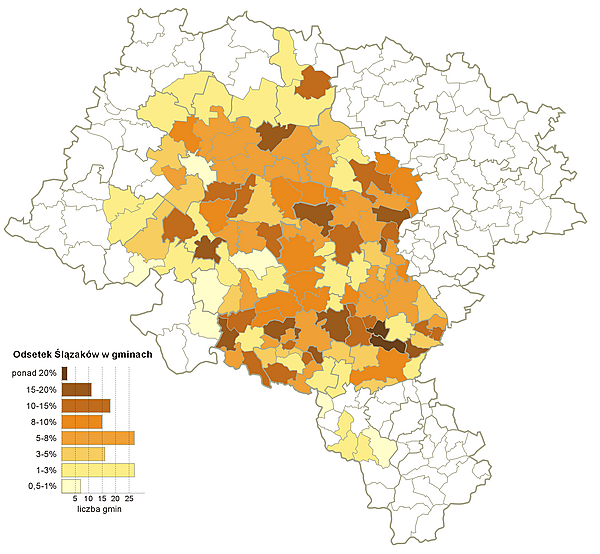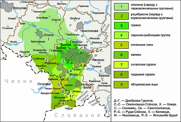 - гужане (гуражи, бытомцы), пщинско-рыбницкие силезцы (пщинско-рыбницкая группа), силезские ляхи (дуляне, доляцы) (также в Чехии), моравяне (моравцы) (также в Чехии) и другие — в основном в Силезском воеводстве Польши;
