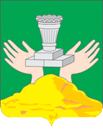 В зелёном поле выходящие из-за золотого холма две руки (по запястье), поддерживающие ладонями серебряную вазу на подставке в виде трёх сложенных брусков (один и два).