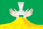 Прямоугольное зелёное полотнище с отношением ширины к длине 2:3, несущее в середине изображение рук, выходящих из холма и поддерживающих вазу на подставке, в розово-телесном, жёлтом, оранжевом, белом и сером цвете.