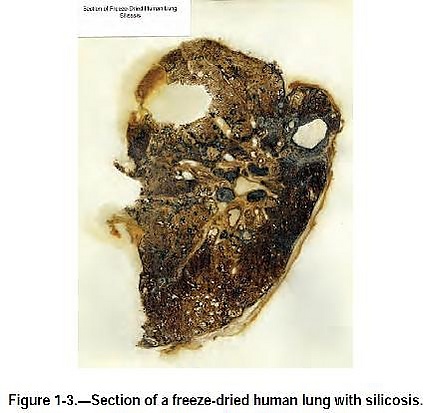 - Диоксид кремния приводит к тому, что клетки-макрофаги разрываются и выпускают вещество в лёгочную ткань, таким образом, появляются рубцы (фиброз), начинается фиброз лёгких.