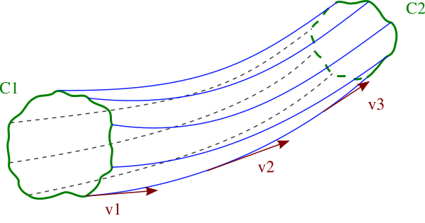 Пучок линий тока, выходящих из замкнутой кривой, не лежащей ни одной своей частью вдоль любой линии тока, образует трубку тока.
