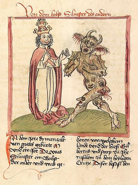 Герберту приписывали изучение магии и астрологии в исламских городах Кордовского халифата и даже общение с самим дьяволом. Предполагалось, что Герберт с помощью дочери арабского философа, у которого учился, завладел книгой заклинаний и скрылся от преследовавшего его философа, сделавшись невидимым.