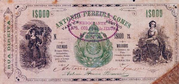 В конце XVIII века сифран, продолжая служить в качестве разделителя разрядов, использовался для обозначения номинала банкнот в португальских реалах (см. иллюстрацию справа), а в первой половине XIX века — банкнот в бразильских реалах (см. первую иллюстрацию внизу). При записи символ отделял в денежной сумме три ноля справа, указывая, слева от знака, сумму в кратной единице — мильрейсах. Иногда он использовался в сочетании с сокращённым обозначением реала rs. Так, сумма в 1000 реалов (1 мильрейс) обозначалась 1$000, Rs. 1$000 или 1$000 rs. Один из вариантов записи — без нулей, то есть 1$, что означает «1 мильрейс» (см. вторую иллюстрацию внизу). В начале XX века, с введением эскудо, заменившего португальский реал в соотношении 1:1000, символ стал выполнять функцию десятичного разделителя, то есть разделять основную денежную единицу (эскудо) и её дробную (сентаво), равную 1⁄100 основной, — 2$50, что означает «Два эскудо и 50 сентаво» (см. третью иллюстрацию внизу)[28].