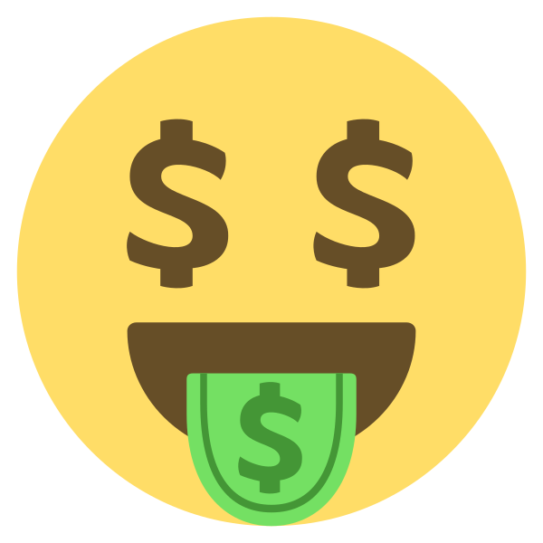 - 🤑 — «лицо с языком из денег» (англ. money-mouth face; U+1F911).