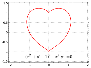 Имеется несколько математических уравнений, графическое решение которых приводит к образованию кривых, похожих на символ сердца. Самое известное из них — кардиоида, которое является частным случаем улитки Паскаля, эпициклоиды и синусоидальной спирали[10]. Другими кривыми, такими как (x2+y2−1)3−x2y3=0, можно добиться лучшего приближения к форме сердца[11].