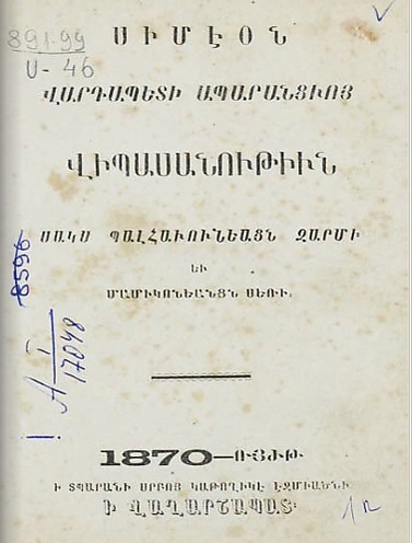 Симеон Апаранци. История домов Пахлавуни и Мамиконян = Վիպասանութիւն սակս Պահլաւունեանցն զարմի եւ Մամիկոնեանցն սեռի. — Вагаршапат, 1870. — 162 с.