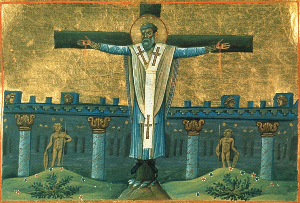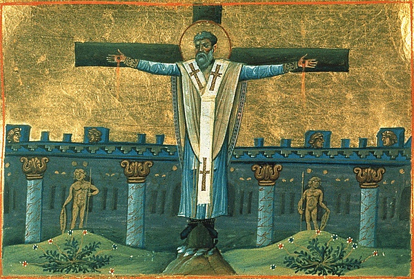 среди глубокого мира, которым наслаждалась Церковь, они (родственники Иисуса Христа), доживают до времен Траяна (97—117), когда вышеупомянутый Симеон, сын Клеопы, дяди Господня, оклеветанный еретиками, приведен был на суд пред Аттика; в продолжение многих дней столь непоколебимо исповедовал веру во Христа, что и консул и все присутствующие крайне удивлялись мужественному терпению 120 летнего старца и наконец приказали пригвоздить его к кресту.[5]