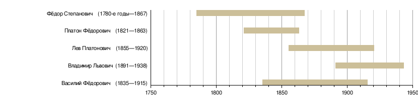 Сыновья Фёдора — Платон и Василий — были известными инженерами-технологами, а также промышленниками и меценатами Украины. Платон к тому же увлекался садоводством.