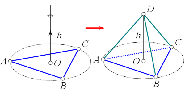 Очевидно, что hS существует при любых RC, Xn и r, кроме Xn = 0. Это значит, что если точка С не лежит в плоскости сферы Sn−1, всегда можно найти такой параметр hS, что на сфере Sn c центром (0, 0, 0, ..., hS) будут лежать и сфера Sn−1, и точка С. Таким образом, вокруг любых n + 1 точек можно описать n-сферу, если n из этих точек лежат на одной (n − 1)-сфере, и последняя точка не лежит с ними в одной (n − 1)-плоскости.