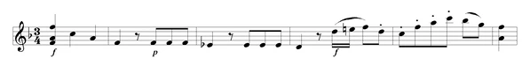 - Menuetto and Trio, 3/4 ― тема менуэта была сочинена Леопольдом Моцартом[3]