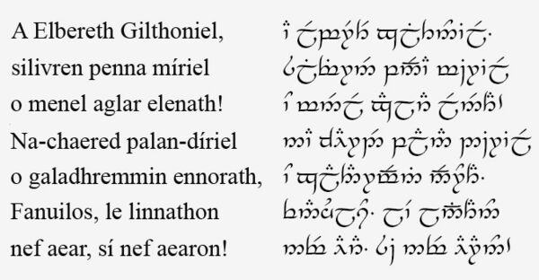 «Изредка они (Глорфиндел с Арагорном) обменивались несколькими фразами по-эльфийски».