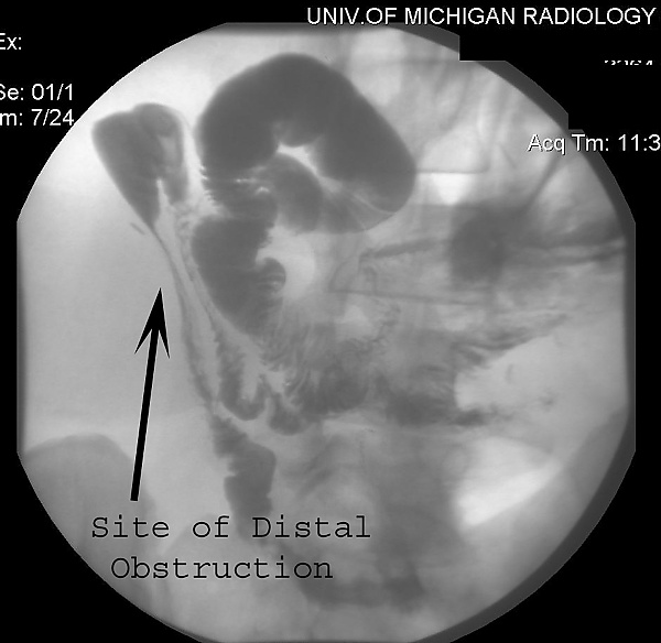 Пациенты могут жаловаться на диарею, спазмы, боль или кровотечение из прямой кишки, запоры из-за кишечной непроходимости или рвоту[3].