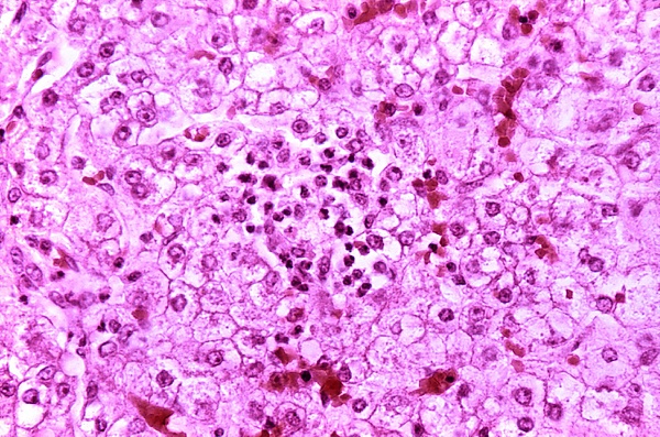 - Увеличение печени отмечается в 40 % случаев, однако желтуха наблюдается редко.