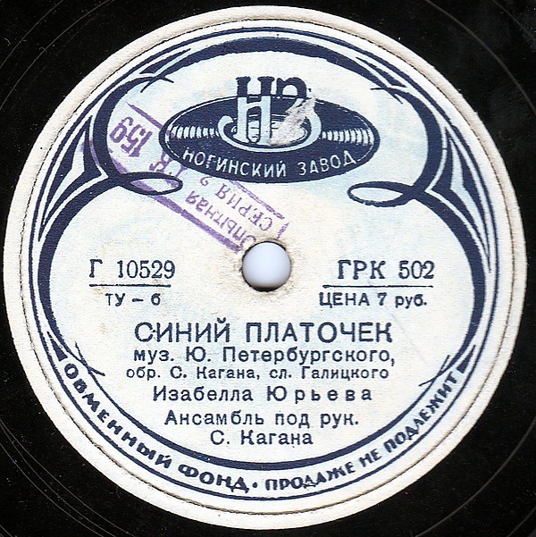 Однако эта запись так и не была тогда выпущена[6]. Причина состояла в том, что на обороте диска была помещена впервые записанная на пластинку песня композитора К. Листова и поэта А. Суркова «В землянке», не пропущенная цензурой к распространению как якобы пессимистическая. Руслановская версия «Платочка» 1942 года была издана лишь спустя 40 лет. Уникальный пробный экземпляр посчастливилось отыскать киевскому филофонисту В. П. Донцову. В 1976 году запись была продемонстрирована в декабрьском выпуске телепередачи «Песня далёкая и близкая», а после реставрации «Синий платочек» и «Землянка» в исполнении Руслановой были выпущены фирмой «Мелодия» в 1982 году[7].