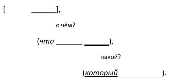 - Подчинённое предложение вместе с союзом обозначается круглыми скобками, главное слово, от которого задаётся вопрос, помечается крестиком[5].