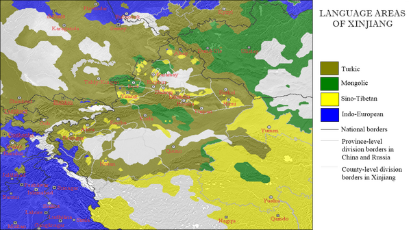 Синьцзян — один из пяти национальных автономных районов Китая. СУАР — автономный район Китайской Народной Республики (КНР), являющийся районом национальной автономии. В административном отношении он делится на округа, автономные округа, уезды, автономные уезды, города, волости и национальные волости. В состав СУАР входят 5 автономных округов: Баянгол-Монгольский автономный округ, Боро-Тала-Монгольский автономный округ, Чанцзи-Хуэйский автономный округ дунган (хуэй-цзу), Кызылсу-Киргизский автономный округ, Или-Казахский автономный округ и 6 автономных уездов[13].