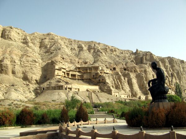 Приблизительно в I веке до нашей эры зародившийся в Индии буддизм проник в Восточный Туркестан через Кашмир. Вскоре при всемерном насаждении господствующими правителями буддизма в различных районах он стал главной религией в регионе. В период расцвета буддизма в оазисах вокруг Таримской впадины было возведено множество буддийских храмов и монастырей, сложилось множество общин монахов и монахинь, возникли такие знаменитые буддийские центры, как Юйтянь, Шулэ, Цюцы и Гаочан. В Восточном Туркестане буддизм достиг своих высот в скульптуре, живописи, музыке, танцах, в зодчестве монастырей и традициях каменных пещер, он оставил богатое и ценное культурное наследие, обогатив китайскую и мировую сокровищницу культуры и искусства.