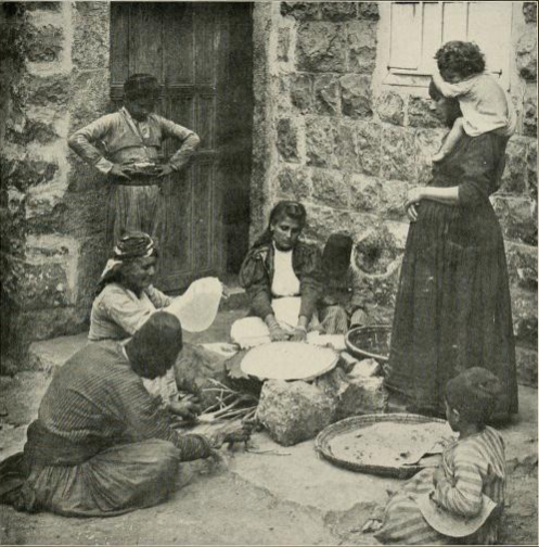Традиционной едой для сирийского крестьянина является каша из варёной дроблёной пшеницы (бургуль), лепёшки, приготовленные из ячменя или пшеницы, козье молоко и различного вида зелень. Молочные продукты, финики и мясо занимают особое место в пищевом рационе кочевников и полукочевников. Христианские общины также выращивают виноград для производства арака — виноградной водки, настоенной на анисе[2].