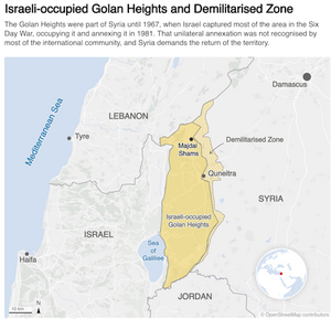 В 1973 году Сирия вместе с другими арабскими государствами напала на Израиль. Разгромить Израиль арабам не удалось, и через 18 дней война была прекращена. По решению Совета Безопасности ООН по окончании войны в 1973 году создана буферная зона, разделяющая Израиль и Сирию. В настоящий момент Голанские высоты контролируются Израилем, но Сирия требует их возвращения.