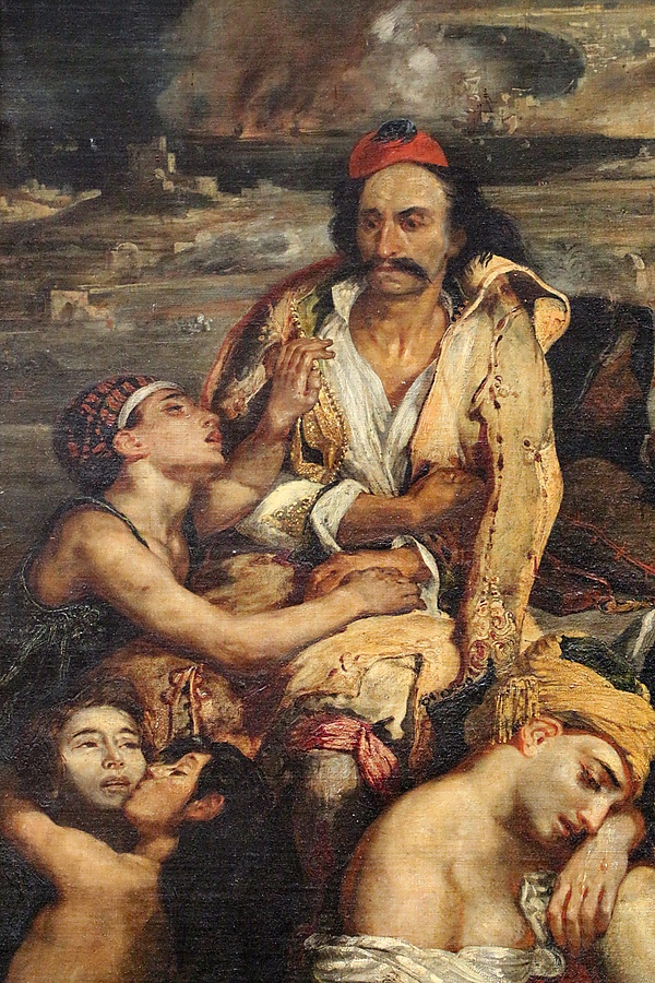Делакруа создал эту картину в начале своей карьеры и она долгое время считалась одним из предварительных этюдов для его более поздней картины «Резня на Хиосе», также написанной в 1824 году, но рассматривается как самостоятельной работой, хотя её можно увидеть в контексте[4][5]. Историческим фоном для драматических сцен, написанных Делакруа в то время, была Греческая революция с известной резнёй на острове Хиос, которую османы учинили против местного греческого населения. Историк искусства и эксперт по Делакруа Ален Дагер де Юро явно относит его к сценам резни на Хиосе.