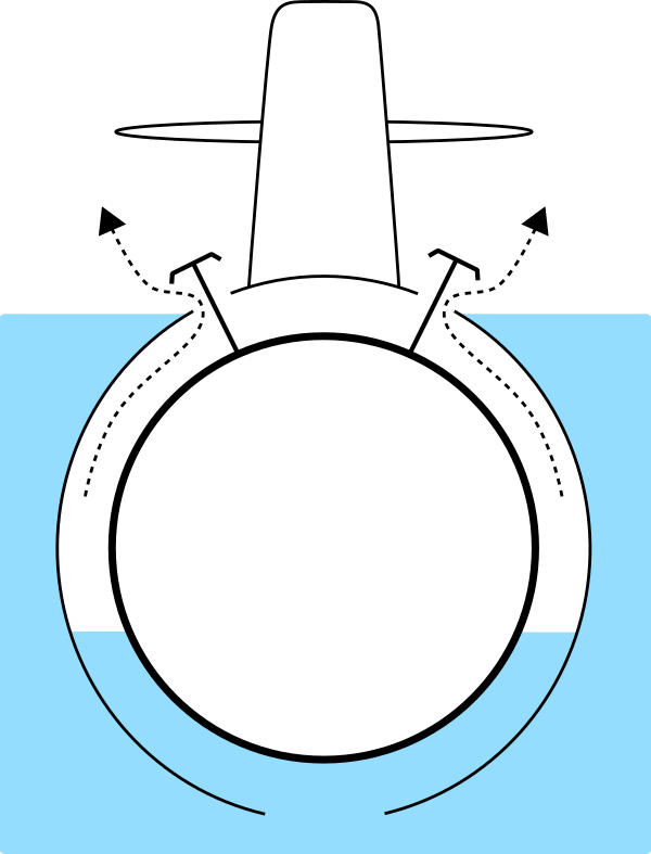 - Цистерны кольцевого зазора — для хранения воды, заполняющей ТА или ракетные шахты перед выстрелом