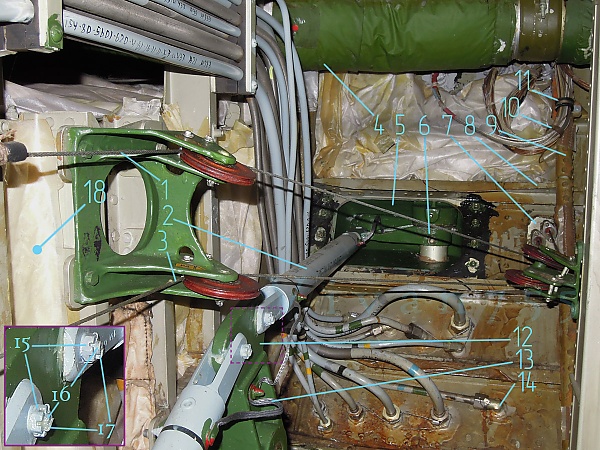 - Смешанная проводка управления — связь между командными рычагами и рулями самолёта осуществляется при помощи тросов и тяг.