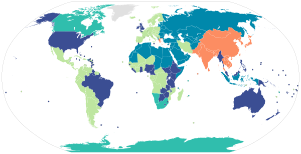 В настоящее время применяется в большинстве франкоязычных, скандинавских, испаноязычных[4] и португалоязычных стран, кроме Бразилии.