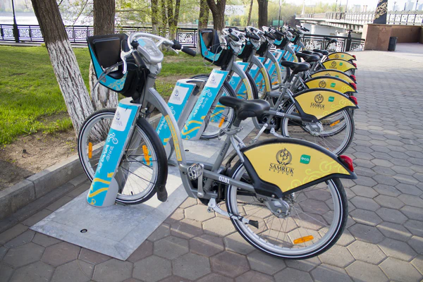 В Нур-Султане с 2014 года функционирует "Astana Bike"[48]. В 2017 году система состояла из 40 станций с 1000 велосипедов[49]. Регистрация в системе на сезон стоит 5000 тенге (28 долл), + залог за RFID-карту (5,5 долл), первые полчаса проката велосипеда бесплатны, следующие - 100 тенге (0,55 долл.). После 3-х часов проката система настоятельно намекает, что велосипед пора сдавать: 4-й и следующие часы обходятся по 1000 тенге.