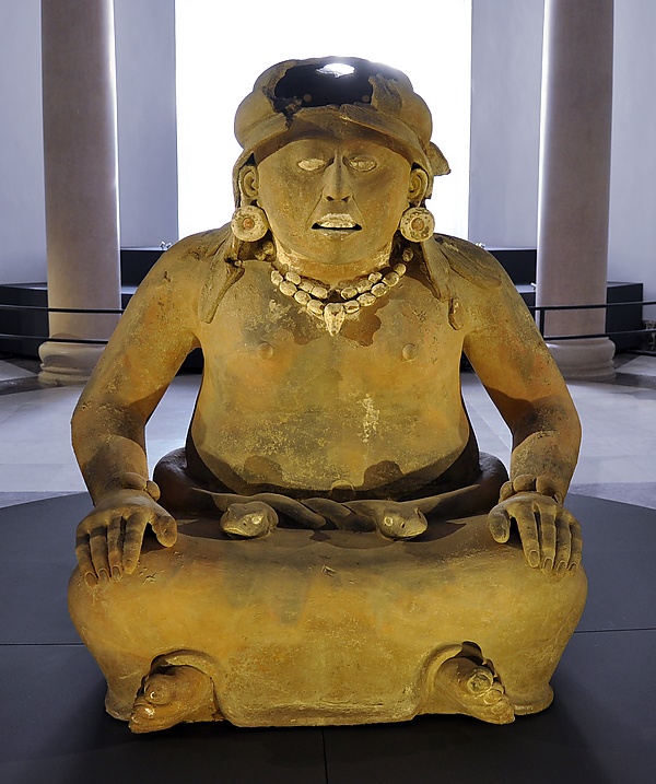 - Змея вокруг талии — возможная отсылка к змеевидной богине Сиуакоатль. Она ассоциировалась не только с войной, жертвоприношениями и политической властью, но и с плодородием, родами и акушерством[7].