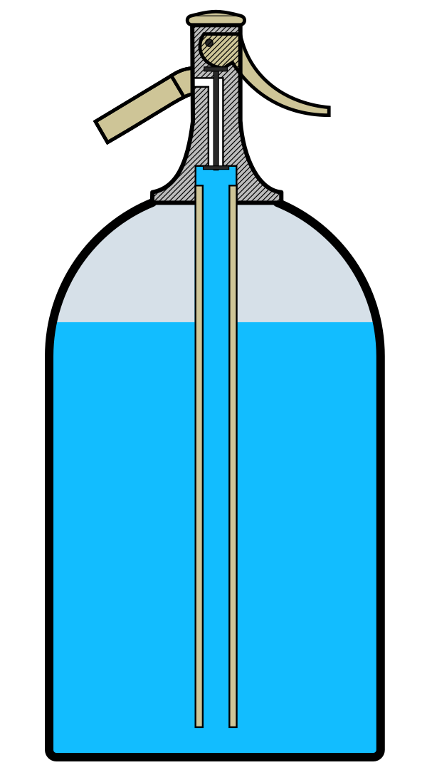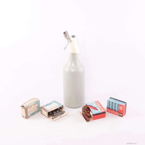 Зарядные сифоны изготовляются из толстого стекла или металла ёмкостью 1—2 л. Их заполнение производится на специальных станциях под давлением 6-8⋅105 Па (6-8 атмосфер)[1].