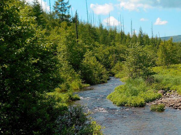Северный Сихотэ-Алинь существенно отличается по ландшафту и представляет собой сильно пересечённый горный рельеф с таёжной растительностью, нагромождения скал и глубокие распадки, в которых текут реки или ручьи.