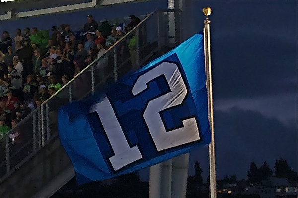 Перед началом каждой домашней игры, клуб приветствует своих болельщиков, поднимая гигантский флаг с № 12[91]. Обычно его поднимает кто-либо из бывших или действующих игроков, тренеров, местных знаменитостей, выдающихся болельщиков, спортсменов из Сиэтла поднимает этот флаг. 15 декабря 1984 года, «Сихокс» вывели из обращения № 12, как дань уважения своим фанатам[71]. Перед победой в Супербоуле «Сихокс» выбежали на поле из туннеля под огромным флагом 12th Man.