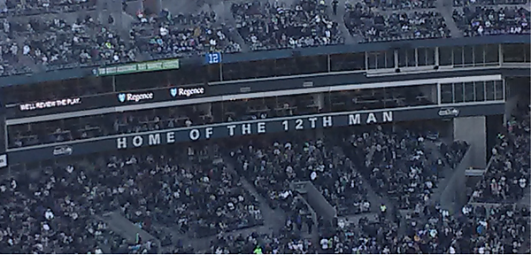 Название «12-й человек» (12th Man, «12-й игрок» или «12-й») относится к фанатской поддержке «Сиэтл Сихокс». Первый домашний стадион команды, «Кингдом», был один из самых громких в НФЛ. Известно, что некоторые игроки команд-соперников готовились к играм на «Кингдом», слушая рок-музыку на полную громкость, чтобы привыкнуть к оглушающему уровню децибел, создаваемому толпой.